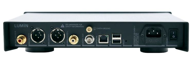 Le connessini comprendono le uscite analogiche bilanciate XLR e RCA, l’uscita digitale 75 Ohm BNC true, due connettori di archiviazione USB (con compatibilità flash drive), l’ingresso di rete Ethernet e il ground post. Lumin offre anche un’app per iPad dedicata che consente la gestione completa dei dati, l’accesso alla libreria musicale e AirPlay.