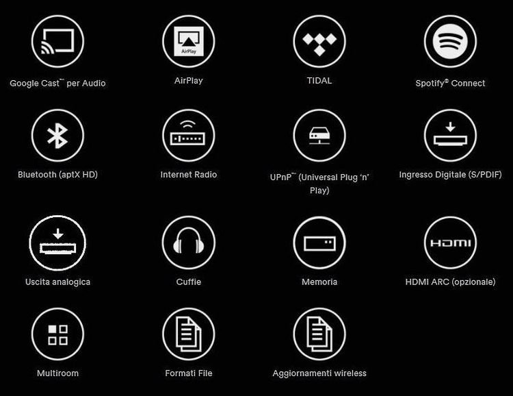 1 x RCA Coassiale (fino a 24bit/192kHz, DoP 64Fs)